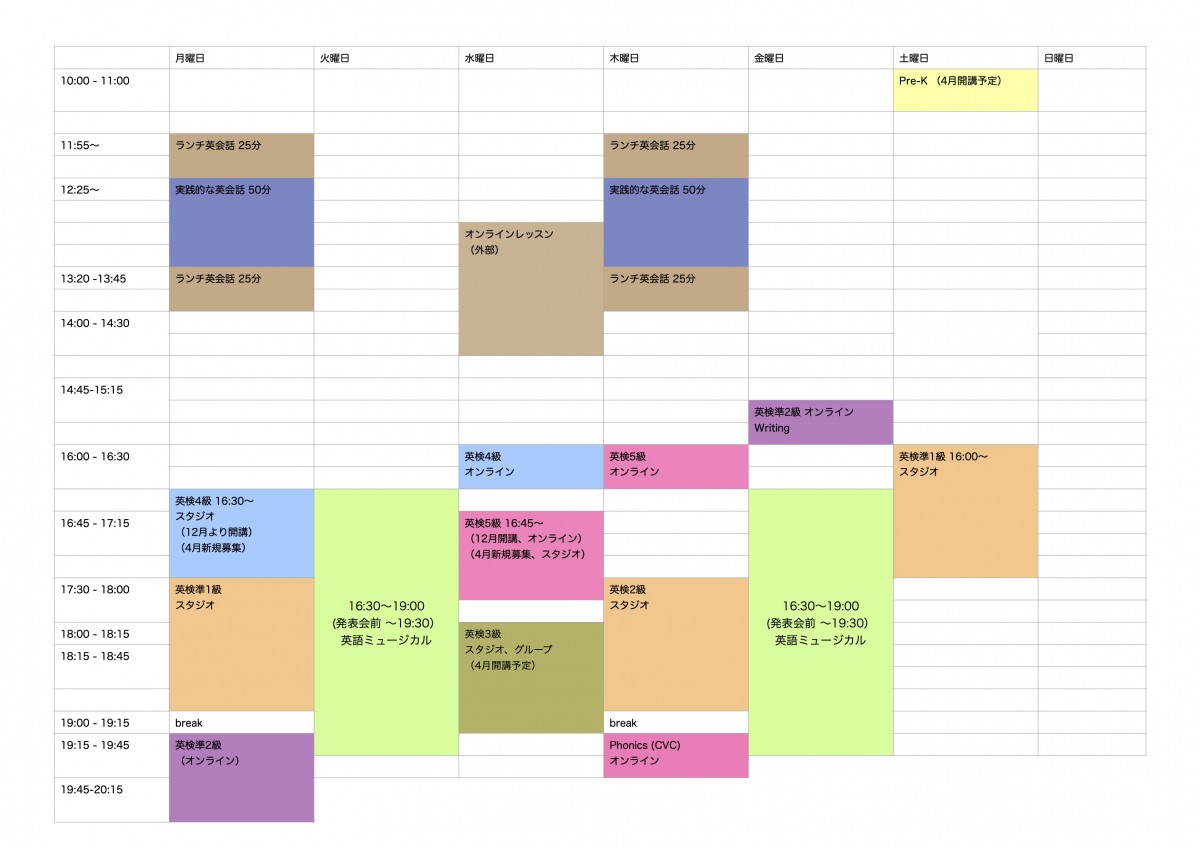 タイムテーブルの時間帯、またその前後も私たちがスタジオにおりますので、どうぞ気軽にお立ち寄りくださいませ。